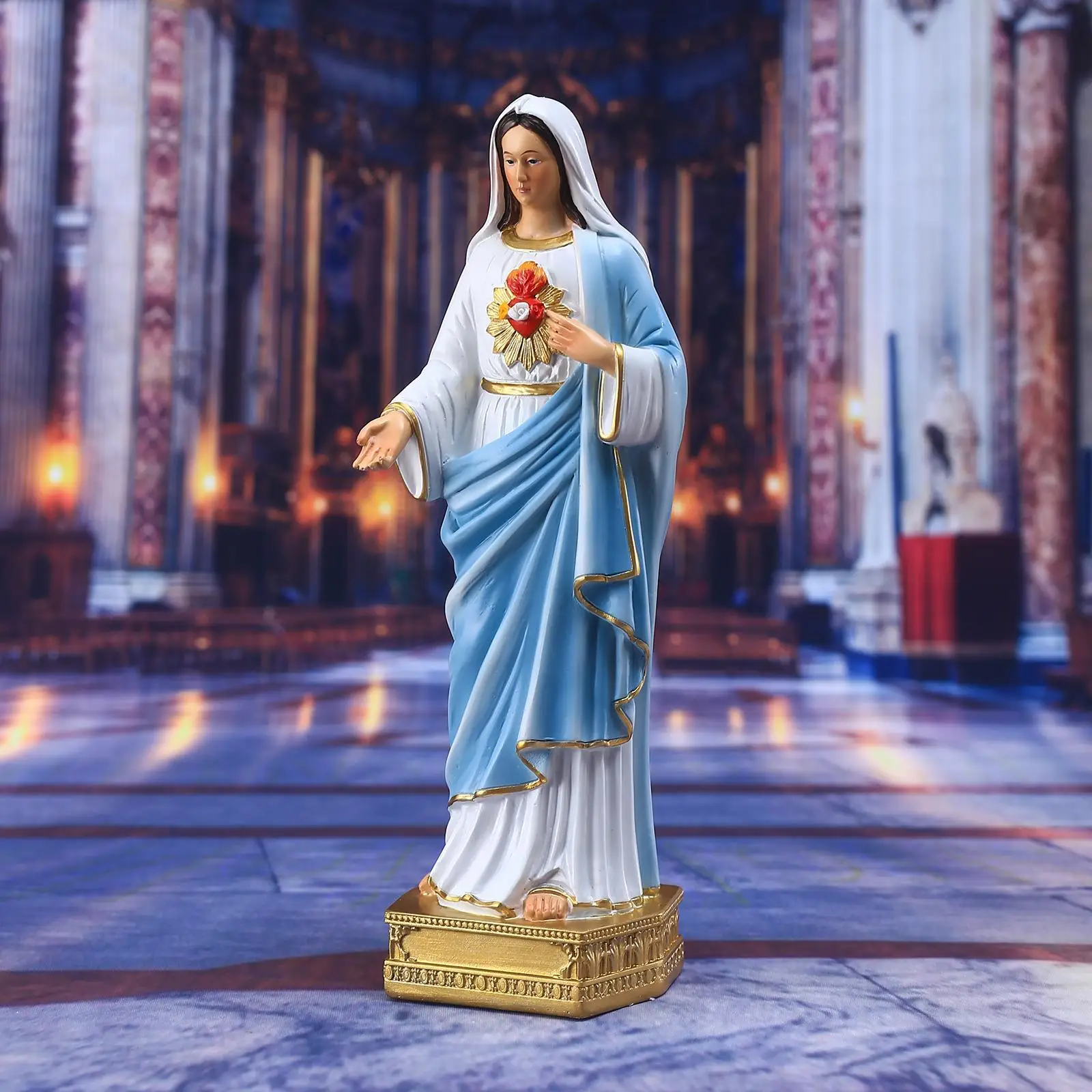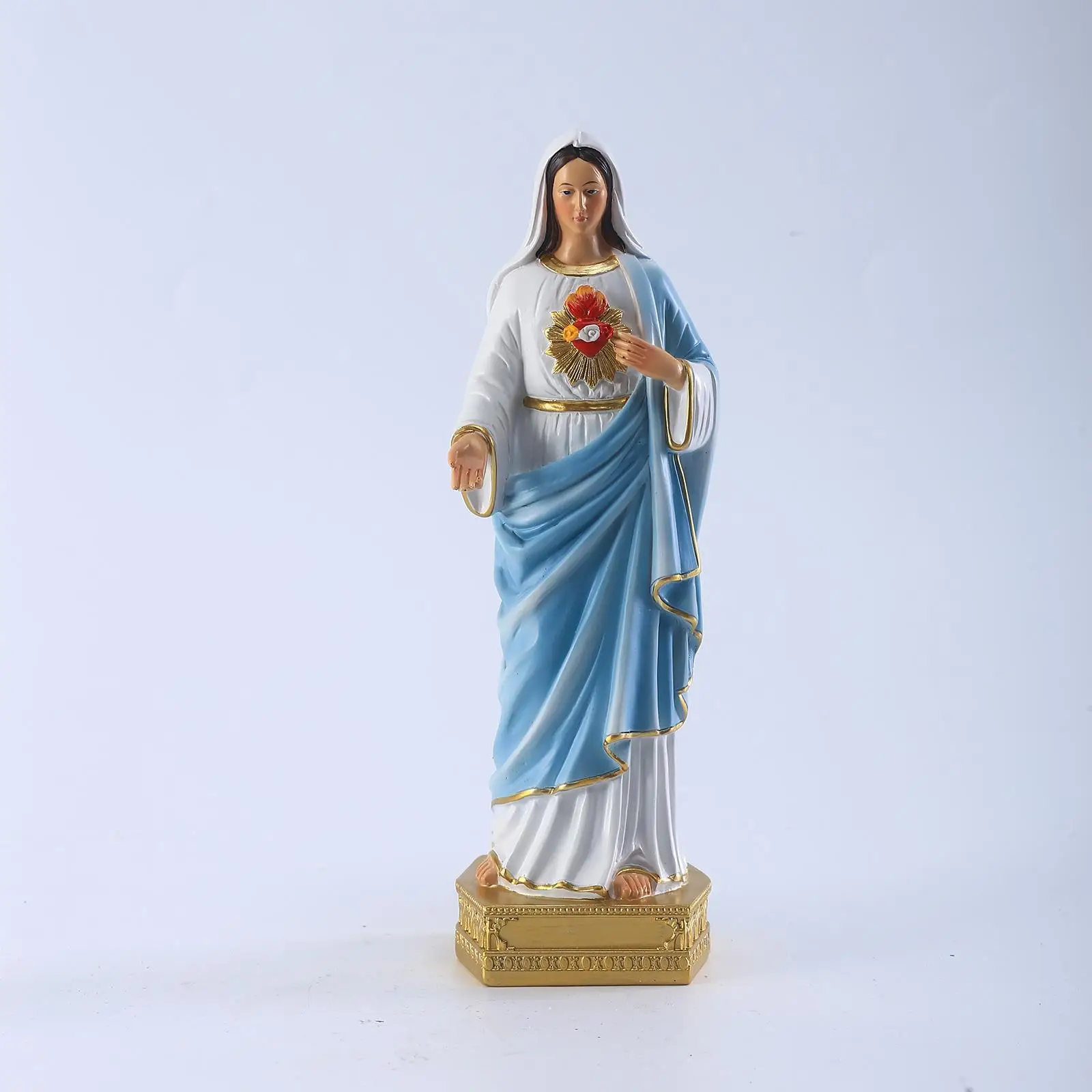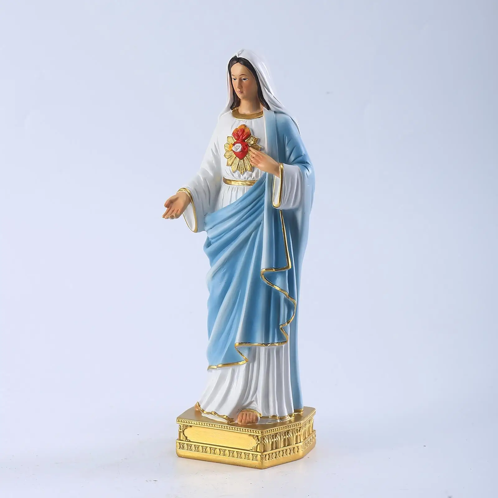 gemaakt van hoogwaardig hars, zodat je er jarenlang van kunt genieten. dit Mariabeeldje is een mooie toevoeging aan je huisdecoratie, of je het nu een plekje geeft op een plank, bureau of in de boekenkast. ook heel geschikt voor scholen, kantoren of andere christelijke omgevingen.